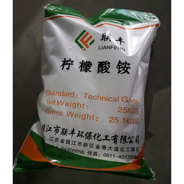 檸檬酸銨主要用于化工分析,工業(yè)水處理,金屬清洗(石油管道清洗),陶瓷分散劑、助滲劑,洗滌劑原料、及土壤改良劑組分,還用于醫(yī)藥、電子等工業(yè)。分析化學(xué)中用作化學(xué)試劑,如肥料中磷酸鹽的測定,測定磷酸鹽及化肥中有效磷酸。電鍍工業(yè)用作無氰電鍍絡(luò)合劑。機械工業(yè)用于配制防銹劑。在食品工業(yè)中作緩沖劑、乳化劑等。EEC主要用于干酪加工。